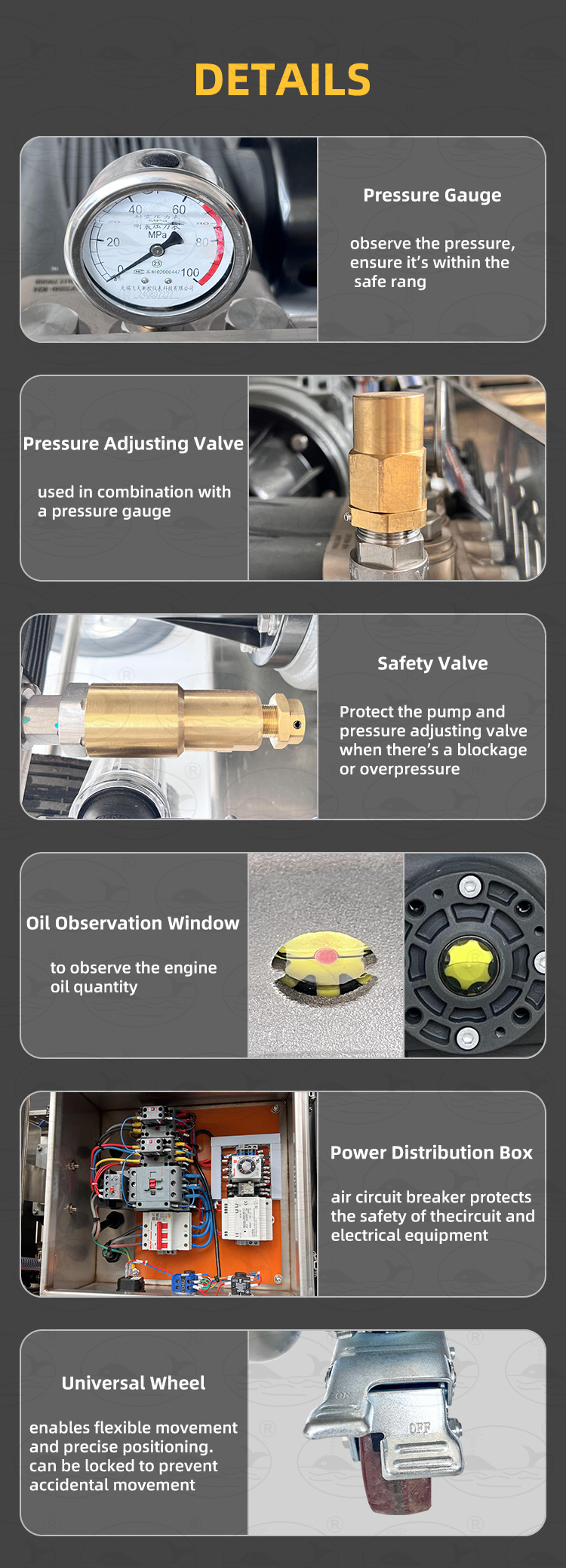 - Comprehensive Safety Protection: Equipped with pressure gauge, overload protection, and emergency stop system